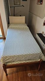 1) Letto singolo modello "VIA VAI" non smontabile (prezzo originale 950€) , struttura in ciliegio massello, con testiera in tela canvas color avorio, legata sul retro da lacci in cuoio color ciliegio. Rete a doghe in legno, ha un cassetto nero profondo sotto la base del cuscino. Eventuale materasso disponibile in 🎁regalo.