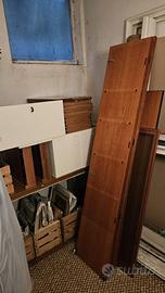2) Vetrinetta-libreria modello "505" in legno ciliegio massello a doppia anta in vetro satinato (prezzo originale 2420€). All'interno delle ante vi sono 3 scaffali in legno ciliegio, subito sotto spazio di appoggio vuoto di circa 25 cm h, poi sotto 4 cassetti (2 bassi + 2 alti) con frontale color avorio e rifiniture in ciliegio. Abbiamo purtroppo smontato la vetrinetta prima di fotografarla, la si vede montata nella prima foto della camera appoggiata alla parete sinistra. Misure della struttura in dettaglio: h cm199, prof cm42, largh cm129 (63cm + 63cm ogni vetrinetta). Fornita già smontata, con tutti i singoli pezzi e tutti gli accessori e viti meticolosamente conservate,facilmente rimontabile.