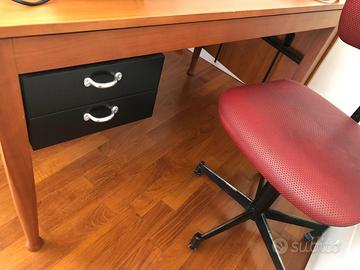 3) Scrivania in legno ciliegio massello abbinata (prezzo originale 1460€), con doppio cassetto nero sul lato sinistro e dal lato destro ribalta per allungare la scrivania.