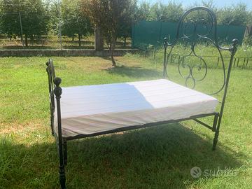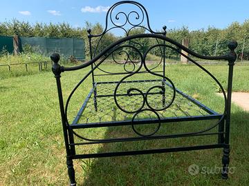 Vendo letto a una piazza e mezzo in ferro battuto decorato, includo materasso e copri materasso. La struttura è smontabile in tre pezzi e facilmente rimontabile ad incastro. La struttura è autenticamente vintage del 1962.