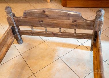 Letto singolo tutto di legno, dimensioni interne 90x190. E' già carteggiato e si può usare così com'è, oppure modificarlo a piacere con una vernice colorata, cera per legno, gommalacca etc. Molto stabile e robusto, e facilissimo da smontare e rimontare. Senza doghe. Non spedisco.