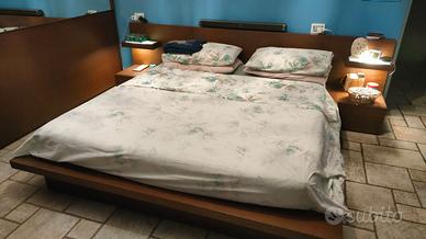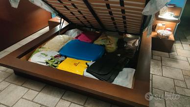 Splendido letto munito di ampio contenitore , dotato di mensole luminose inserite nella testata. Dotato di rete in doghe in legno.dimensioni spalliera 280 cm x 78. Solo ritiro in loco