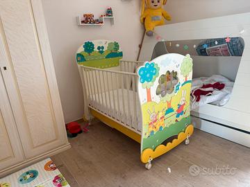 Letto a sbarre culla per bambini collezione giulio il conoglio baby expert edizione limitata. Bellissimo letto a sbarre molto resistente, può tenere molti kg, si possono togoere entrambe le sbarre ed usarlo andhe come letto montessriano fino ai 5/6 anni. Fantasia allegra con finestrella ad oblò molto simpatica per i bambini. Vendo completo di materasso antiacaro tenuto perfettamente e sfoderabile quindi si puo lavare tranquillamente anche in lavatrice. Cassetto sottostante molto comodo per riporre vedtiti o coperte. Come da foto il prezzo iniziale è stato piu di 500€ e il materasso comprato apparte costava 150 .. vendiamo insieme per 300€ tutto.