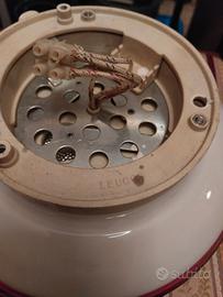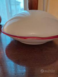 Vendo lampada Leucos Ronda 24. Realizzata in vetro di Murano bianco opalino e bordo in vetro rosso applicato, può essere appesa a muro o a soffitto. In ottime condizioni estetiche, presenta ancora le etichette originali. Potrebbe presentare lievissimi segni del tempo. Completa della sua base con sistema brevettato. Dimensioni: 24x13h Per ulteriori informazioni sono a disposizione