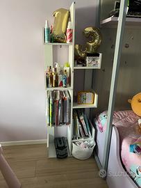 Libreria Bianca a Forma di Albero, Scaffale a 8 Livelli, Scaffale Verticale in Legno, Espositore Salvaspazio per Soggiorno, Cameretta, Ufficio, 50 x 25 x 145 cm