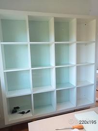La struttura è in laccato o laminato bianco opaco/lucido, ed è suddivisa in 16 ampi scomparti a cubo (4 file in altezza per 4 colonne in larghezza).