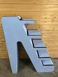 Libreria a forma di scarpa in polistirolo pressato. Misura : Altezza 120 cm Larghezza 94 cm Attualmente è colorata di azzurro e rifinita con velluto nero. Io colore è da riapassare ma la struttura è in condizioni perfette. Pagata ?250,00 Vendo a 80?