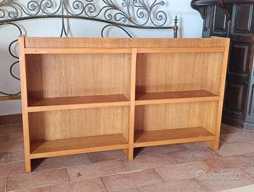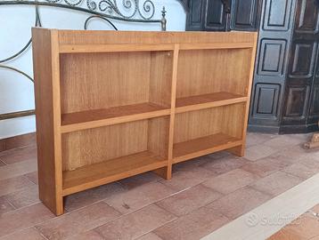 Elegante libreria vintage a giorno, in legno chiaro a quattro ripiani, anche pensile. Prob. design scandinavo della seconda metà del secolo scorso.