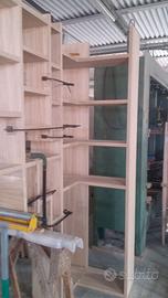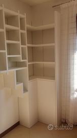 libreria ad angolo SOSPESA costruita con listellare ricoperto essenza rovere in modo che risalti la venatura, spazzolato con misura lungh. 310 parte dx + 80 lato sx con una altezza variabile max 250 cm prof. 30 cm. I fianchi verticali e orizzontali saranno tutti dello spessore 25 mm, libreria tutta a giorno senza lo schienale ma fissato con apposita ferramenta nascosta a muro (muro potante con mattoni forati interni) e piccolo schienale nella parte bassa dove sarà chiusa con 2 ante ma sfruttabile tutto nell'angolo con ricavate prese elettriche direttamente sullo schienale con apertura push pull a pressione e 2 ripiani interni aggiustabili. Finitura laccato bianco opaco coprente rall 9010. Il prezzo si intende franco fabbrica compreso finitura iva non comprendente, costruito su commissione ed esigenze del cliente, non è disponibile a magazzino ma essendo i diretti produttori falegnami possiamo riprodurlo uguale o in base alle proprie esigenze. per domande o dubbi contattateci P.S. disponibili a dare suggerimenti o chiarimenti in merito, per noi conta dare vita al vostro sogno DIRETTAMENTE DAL PRODUTTORE ASTENERSI RIVENDITORI O COMMERCIANTI