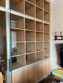 Libreria a parete con doppie ante e porta vetro