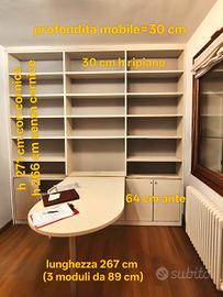 Vendo causa trasloco libreria aperta su misura, struttura colore avorio e schienale colore tortora.