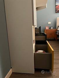 Struttura in legno laccato con spessori importanti; ante/cassetti a chiusura ammortizzata che ne accompagna il movimento nella parte finale.