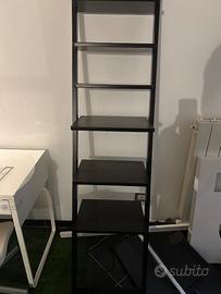 Libreria di Ikea, modello Hjalmaren, colore bianco. Altezza 188 cm x larghezza 44 cm (barra di appoggio sul muro - 50 cm) x profondità 34 cm con 6 mensole (prime 3 in alto con profondità 20 cm e altre 3 in basso profondo 33 cm). Condizioni come nuova, senza imperfezioni.