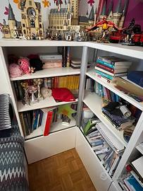 libreria bianca composta da modulo angolare + modulo aggiuntivo