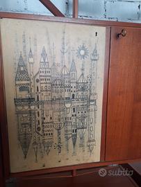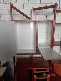 libreria molto particolare con 3 piedi per modulo . manca solo 2 vetri nei cassetti. le aste sopre sono solo smontate e completa di tutto . 3333823462