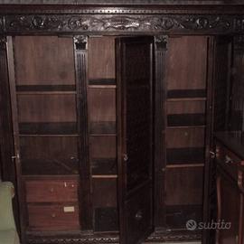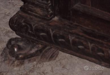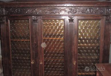 Libreria antica a zampe di leone, noce, a tre ante, con cassettiera interna ( due cassetti) nella prima anta, come da foto. Per qualsiasi informazione e per prendere visione della libreria contattatemi.