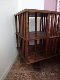Vendo libreria girevole a cubo, antica, un poco deformato il piede di supporto, si può utilizzare anche a terra. Bellissimo oggetto, originale e di stile inglese. Altezza 68 senza piede, 78 su piede, i lati sono 61 cmq dunque lunghezza e larghezza. Si trova in un garage facilmente raggiungibile in zona Montebello a Parma, leggera da trasportare. Va lucidata ma integra. Ritiro a mano.