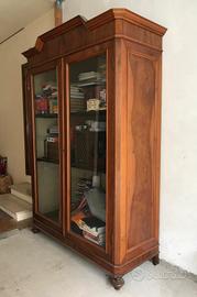 splendida libreria in noce periodo fine '800 , ottimo stato, restaurata, piedi a cipolla, misure scritte in foto.
