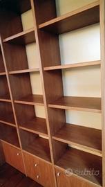 La libreria con cassetti e sportelli in basso è alta da terra 2,01 mt e ha una profondità di 35 cm. In ottime condizioni.