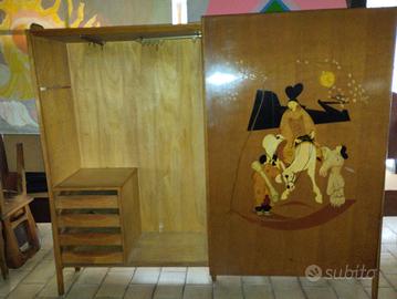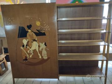Vittorio Dassi, nobile vintage, libreria com armadio appendiabiti / attaccapanni (presenti gancetti per appendere le grucce).