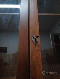 comoda ed elegante libreria in legno con tre scaffali principali chiusi da due ante in vetro, tre scaffali più piccoli aperti, due ampi cassetti ed un vano inferiore .tutto originale ed in buono stato, comprese cerniere laterali, chiavistelli e chiavi .misure 188 cm altezza, 40 profondità, 118 circa di larghezza. ideale per studio o villa.