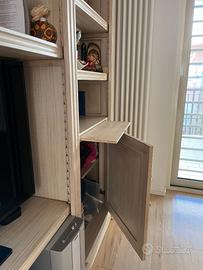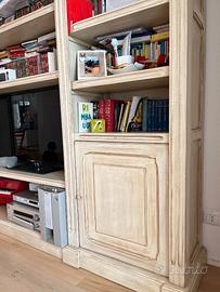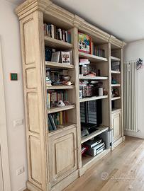 Vendo libreria di fabbricazione artigianale, pezzo unico di assoluto pregio. Il mobile è interamente in rovere trattato a mano con vernici atossiche. E' lungo 2.75 m, alto 2.65 m circa e profondo 45 cm. Tutte le mensole sono mobili, visibili nelle foto di dettaglio. Il mobile contiene due vani chiusi da ante e due piani di appoggio estraibili. La libreria è completamente smontabile e trasportabile. Il mobile si trova in provincia di Bari. Prezzo da concordare.
