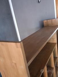 La libreria ricorda una bacheca, è in legno massello con finitura in vernice ad acqua opaca!