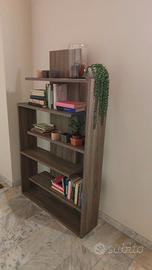 Libreria asimmetrica moderna in MDF colore greige, misure come in foto larga 101 cm profonda 24cm, alta 165 cm (incluso il retro), fino alla base ultimo ripiano invece è 140cm., facilmente smontabile all'occorrenza.