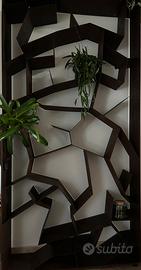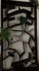 Disegna la trama stilizzata di un albero senza foglie, la struttura della libreria AUTUM prodotta in lamiera di acciaio trattata a mano con un procedimento chimico tale da creare l'effetto ruggine, nuova