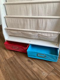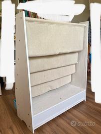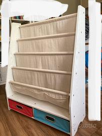 Vendo libreria Montessoriana per bambini , condizioni perfette. La libreria non è smontabile. 5 scomparti 3 tasche 2 cassettini totalmente estraibili Misure Larghezza 70cm Altezza 87 cm Profondità (a terra) 28,5 cm