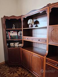 Ampia libreria in legno di noce con numerosi ripiani e contenitori, ben rifinita. Trasferimento a carico dell'acquirente.