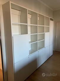 Vendo libreria legno marca LEMA bianco panna opaco in ottimo stato Lunghezza 3 metri x 227 altezza x 37 profondità La libreria è smontata per trasloco