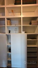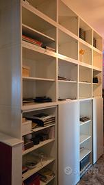 Libreria bianca legno componibile, elemento in basso con ante scorrevoli, misura totale cm 2,40xH 2,70 profondita' cm 39, 5 cassetti a scomparsa. gli elementi sono tutti componibili di varie misure. buono stato. disponibile da vedere