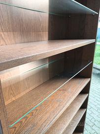 libreria in legno scuro Ikea con 9 ripiani regolabili, 3 in vetro come in foto altezza 201cm larghezza 80cm profondità 28cm