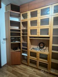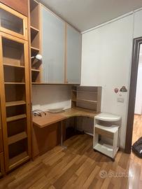 Vendo libreria billi, modulo ad angolo sx 60x60 colonne singole 40x40 colonna doppia centrale 80x80 scrivania ad angolo. Unico difetto alcuni pannelli di cartone posteriori da sostituire perche tagliati per passaggi cavi.