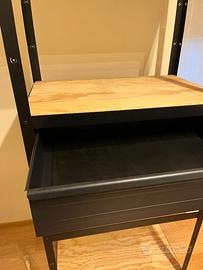 Vendo mobile Bror di Ikea con struttura in metallo satinato nero e ripiani in legno, compreso un cassettone tutto in metallo che viene solitamente venduto separatamente.