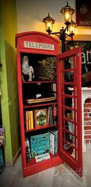 Bellissima libreria che riproduce la classica cabina rossa londinese. Realizzata in legno con finestrelle di vetro. Quattro ripiani spaziosi e rimovibili per ospitare i libri e oggetti. Prodotto messo in esposizione nel mio ex negozio. Dimensioni: cm 53x180h. L'oggetto è ingombrante e quindi vendo solo a persone in zona che si occupano del ritiro personalmente.