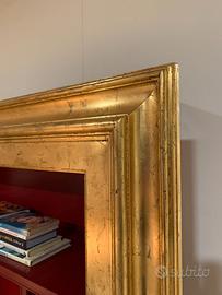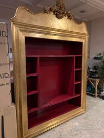 Vendesi mobile/libreria Casa Nobile finitura laccato rosso con cornice e dettagli in foglia oro. Mobile di grande presenza, ideale per salone, studio professionale, ingresso importante o ambienti classici.