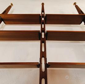 Libreria cielo terra con montanti in teak e piedini in ottone Larghezza 330 cm Altezza minima 300 cm max 340 Profondità 30 cm