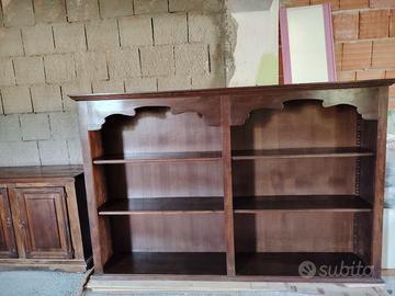 Libreria in legno massiccio composta da una parte inferiore chiusa, con sportelli ciascuno munito di chiave, e una parte superiore aperta. Vendibili anche separatamente. Misure libreria chiusa: