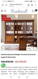 Libreria classica in pregiato legno di ciliegio con tre ante scorrevoli e dodici ripiani regolabili. Parte della Collezione Arte Piombini finitura Ciliegio Chiaro Anticato. Ritiro in loco, smontaggio e trasporto esclusi.