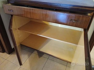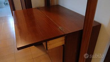 libreria anni 70 con fissaggio a soffitto e piano a ribalta.