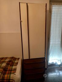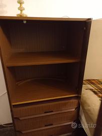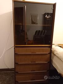 libreria componibile composta da più elementi sovrapponibili o affiancabili. n. 2 cassettiere a 4 cassetti, un anta armadio, un modulo con vetrinetta fume, 2 moduli libreria. profondità 45 cm. larghezza moduli 50 cm. altezza moduli dai 60 ai 120 cm