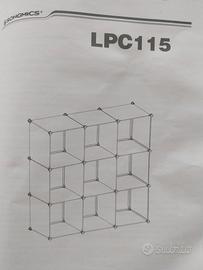 Vendo libreria componibile in diverse modalità a seconda delle esigenze. Colore struttura metallica nera, spaziatori materiale palstico bianco opaco. Nuova mai usata