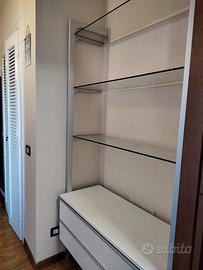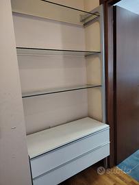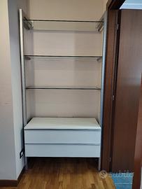 libreria Ikea con scaffali di vetro ad altezza regolabile. Nella parte bassa 2 ampi cassetti come da foto
