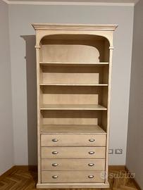 Libreria in legno laccato e patinato. Realizzazione artigianale