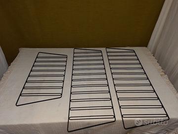 La libreria in foto non è montata ma solo appoggiata, l'ultima foto è un esempio preso in rete. Libreria con montanti in ferro anni 60 con fissaggio a parete. Discrete condizioni generali, piccoli difetti e segni del tempo. Dimensioni: mensole lunghe cm. 80 x 30, mensole corte cm. 40 x 30, 2 montanti in ferro alti h cm. 79, 1 montante in ferro basso h cm. 56. Il trasporto è a carico dell'acquirente.