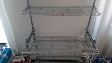 libreria con porta PC scorrevole di design BATTISTI in lega di metallo leggero cromato - 90x50xh157 cm con 4 ripiani smontabile e spostabile su 4 ruote +