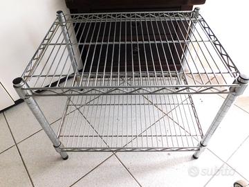 tavolinetto di design BATTISTI in lega di metallo leggero cromato - 60x45xh45 cm con due ripiani - smontabile -