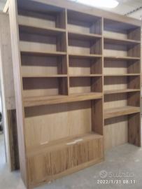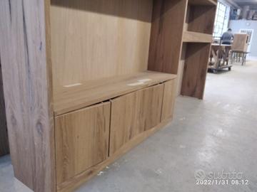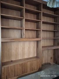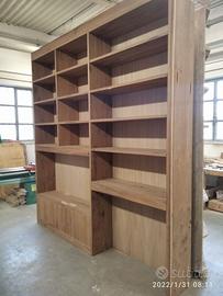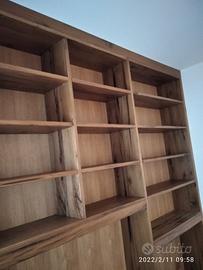 libreria lungh.290 prof.40 h 296 fino a soffitto predisposta ROVERE VECCHIO RECUPERATO costruito a 3 strati in modo che non si muova nel tempo in 2 blocchi da 145 cadauno circa: a sx troveremo parte bassa il basamento con zoccolo h 10 cm con piedini livellatori per mettere a bolla il tutto (in cui lo riporteremo anche la parte superiore da 10 cm) 3 ante per arrivare ad un altezza circa 40 cm su cui andrà la tv successivamente, da decidere se fissata allo schienale portante o appoggiata sui propri piedini IN ROVERE DA 19 MM MENTRE NEL RESTANTE DA 8 MM con ripiano interno aggiustabile in altezza, apertura push pull a pressione, sopra la tv troveremo 3 ripiani aggiustabili in altezza. modulo dx con spazio parte sotto per inserire il divano con travetto di rinforzo, sopra 4 ripiani aggiustabili in altezza su ferramenta adatta a coda di rondine con schienale. Finitura oliata franco fabbrica con imballo iva da calcolare a parte. il mobile è già stato prodotto su commissione del cliente ma possiamo riprodurlo uguale o con misure diverse dato che siamo i diretti produttori falegnami. per noi conta dare vita alla vostra idea. DIRETTAMENTE DAL PRODUTTORE. ASTENERSI RIVENDITORI E COMMERCIANTI.